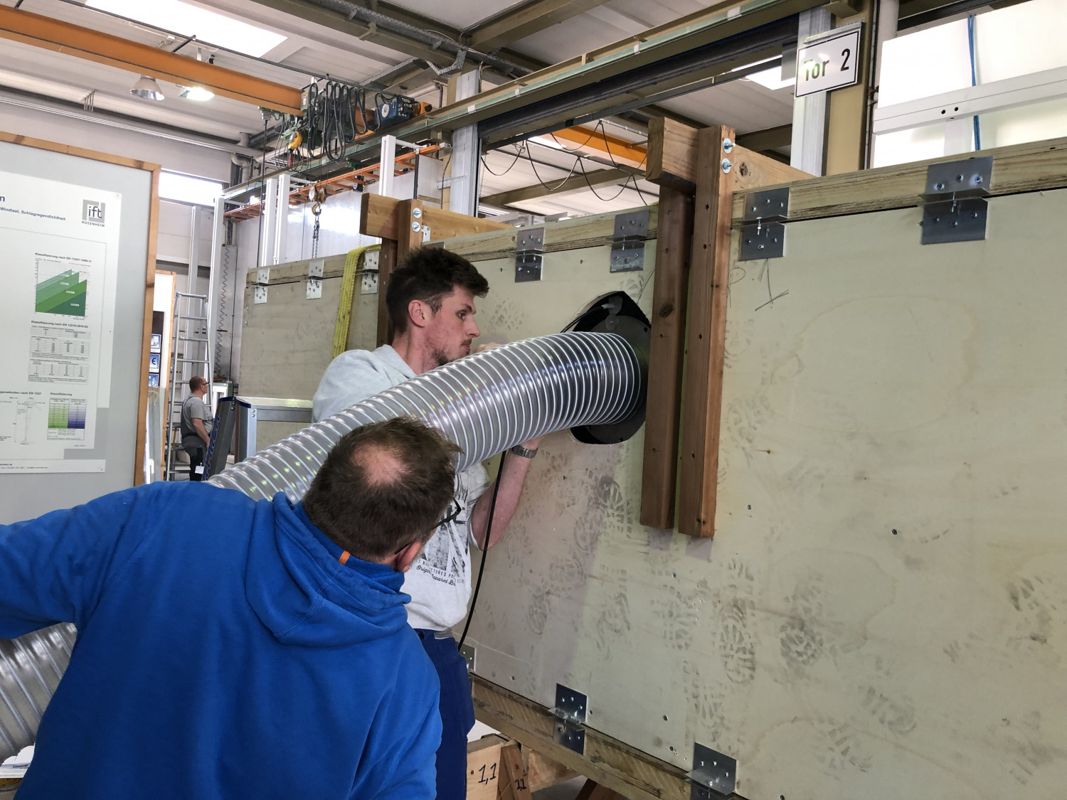 Das unabhängige Labor ift-Rosenheim hat alle Versionen des Dachlux Dachfensters auf ihre Stoßfestigkeit hin geprüft. Dieser Test ist genormt und wird durchgeführt, indem ein 50 kg schwerer Ledersack, der mit Glasperlen gefüllt ist, fallen gelassen wird. Dies simuliert den Sturz einer Person auf das Glas.