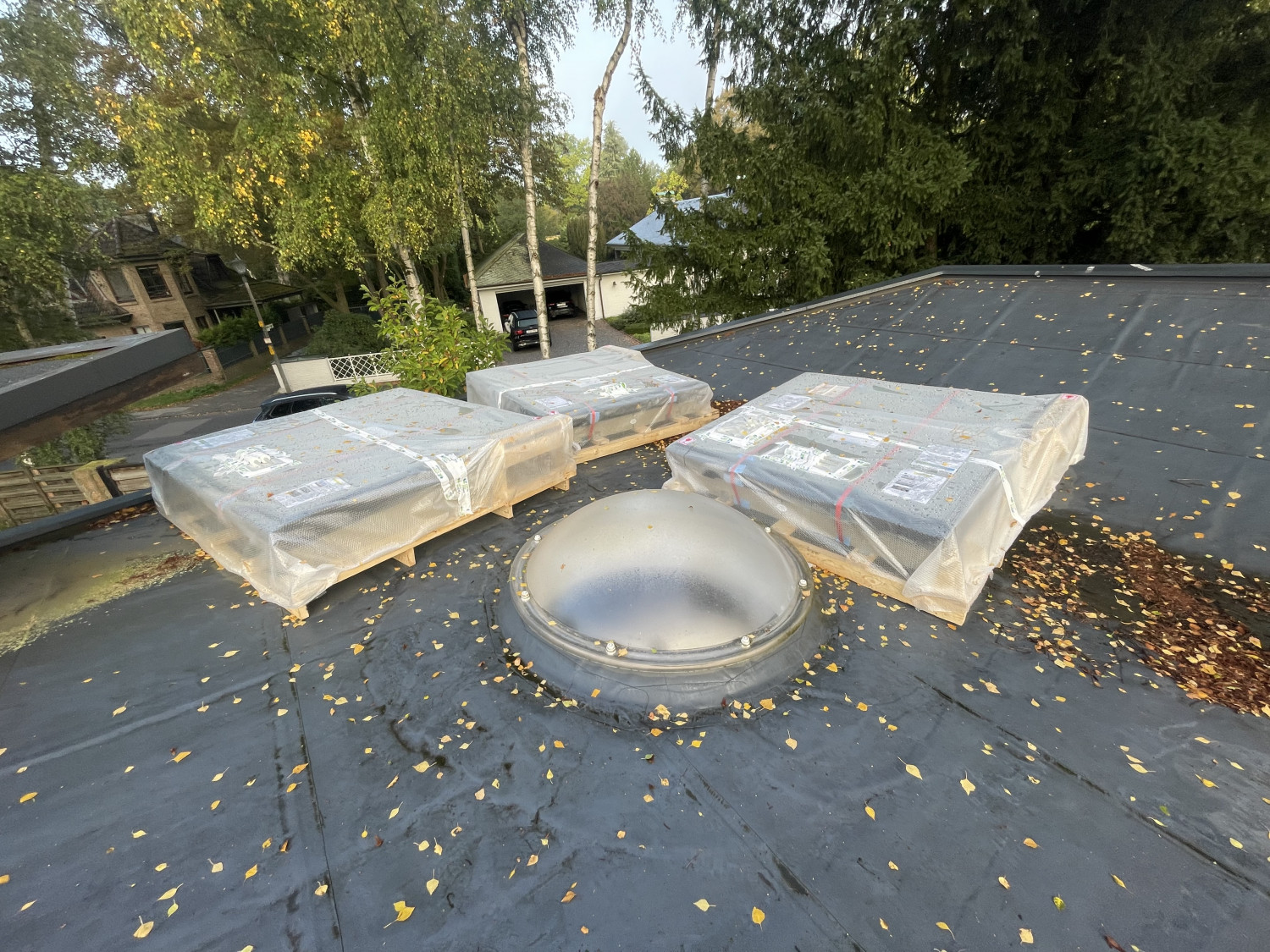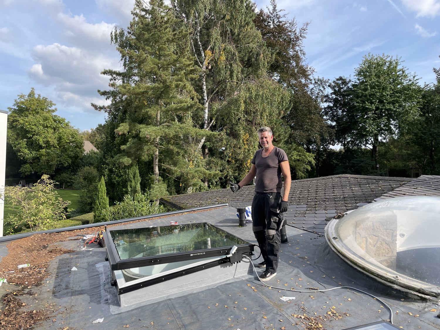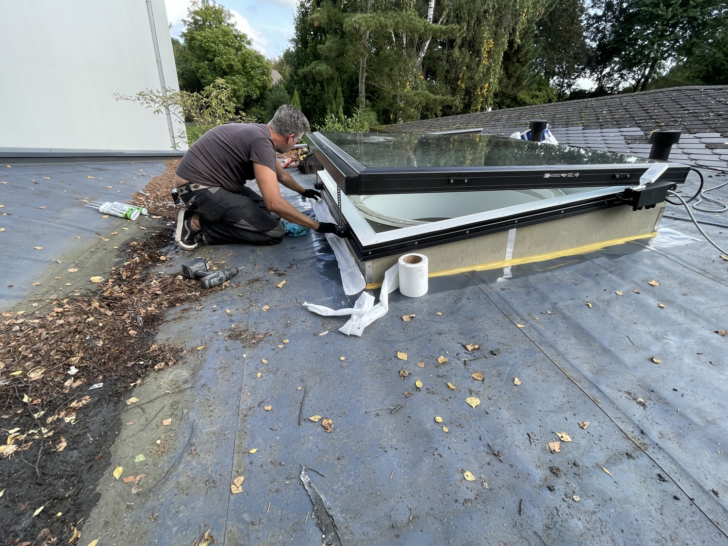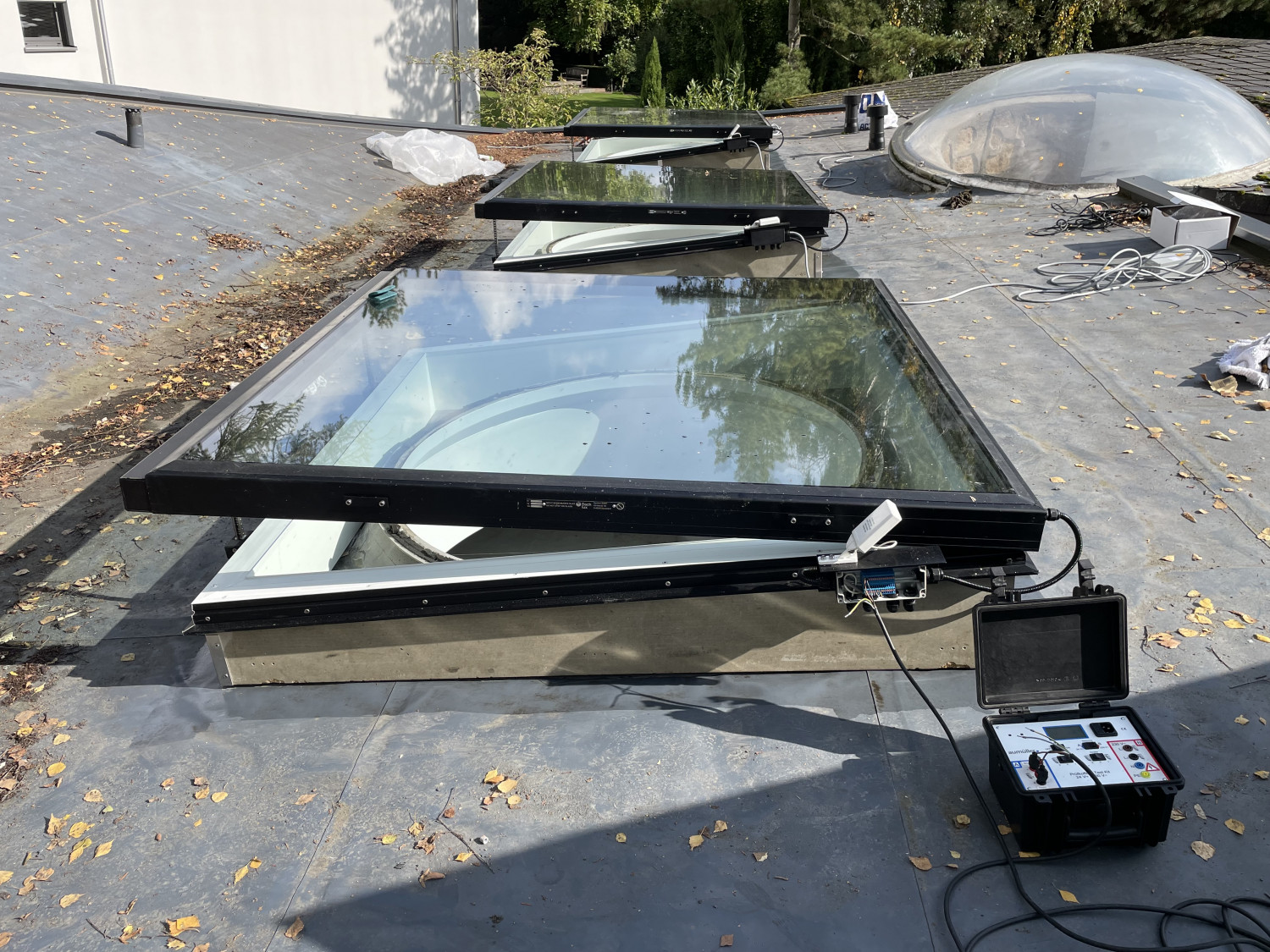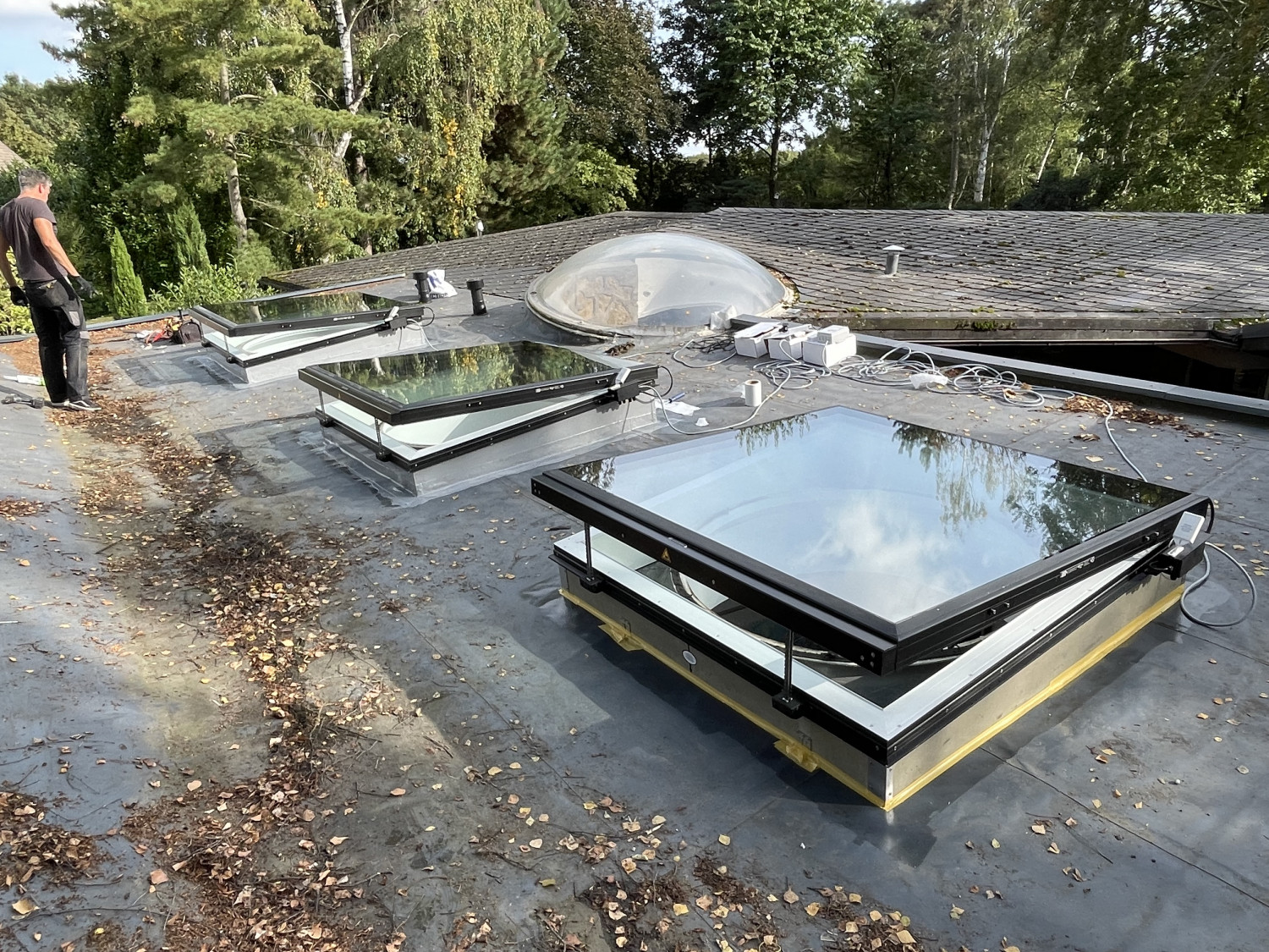 Somit hat der Kunde nun 3 Stück perfekt isolierte Flachdachfenster. Alle 3 können zur Be- und Entlüftung elektrisch geöffnet werden.
