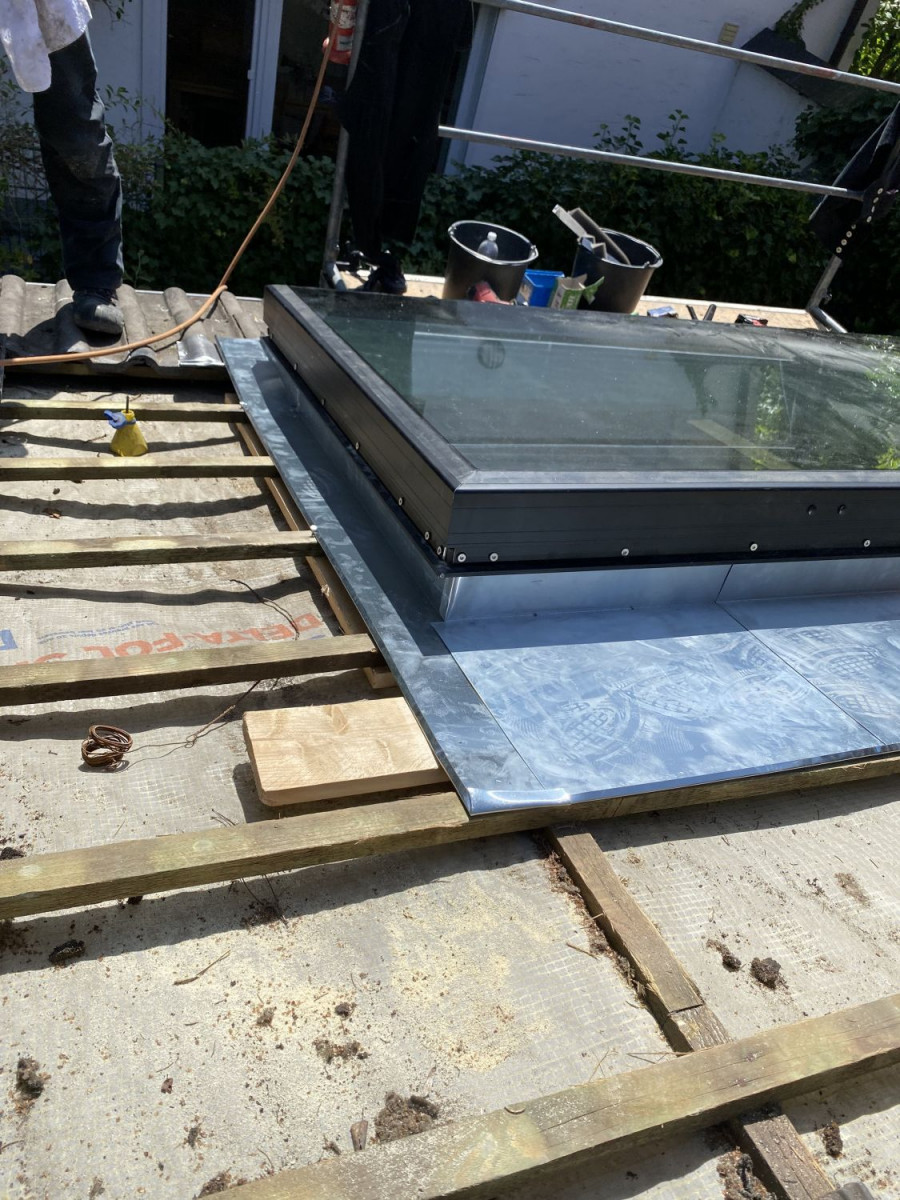 Es ist wichtig, dass die Außenseite des Aufsatzkranzes gut abgedichtet ist. Es ist üblich, dies mit einer Überdachung zu tun. Eine Zinkmanschette tut es aber auch.