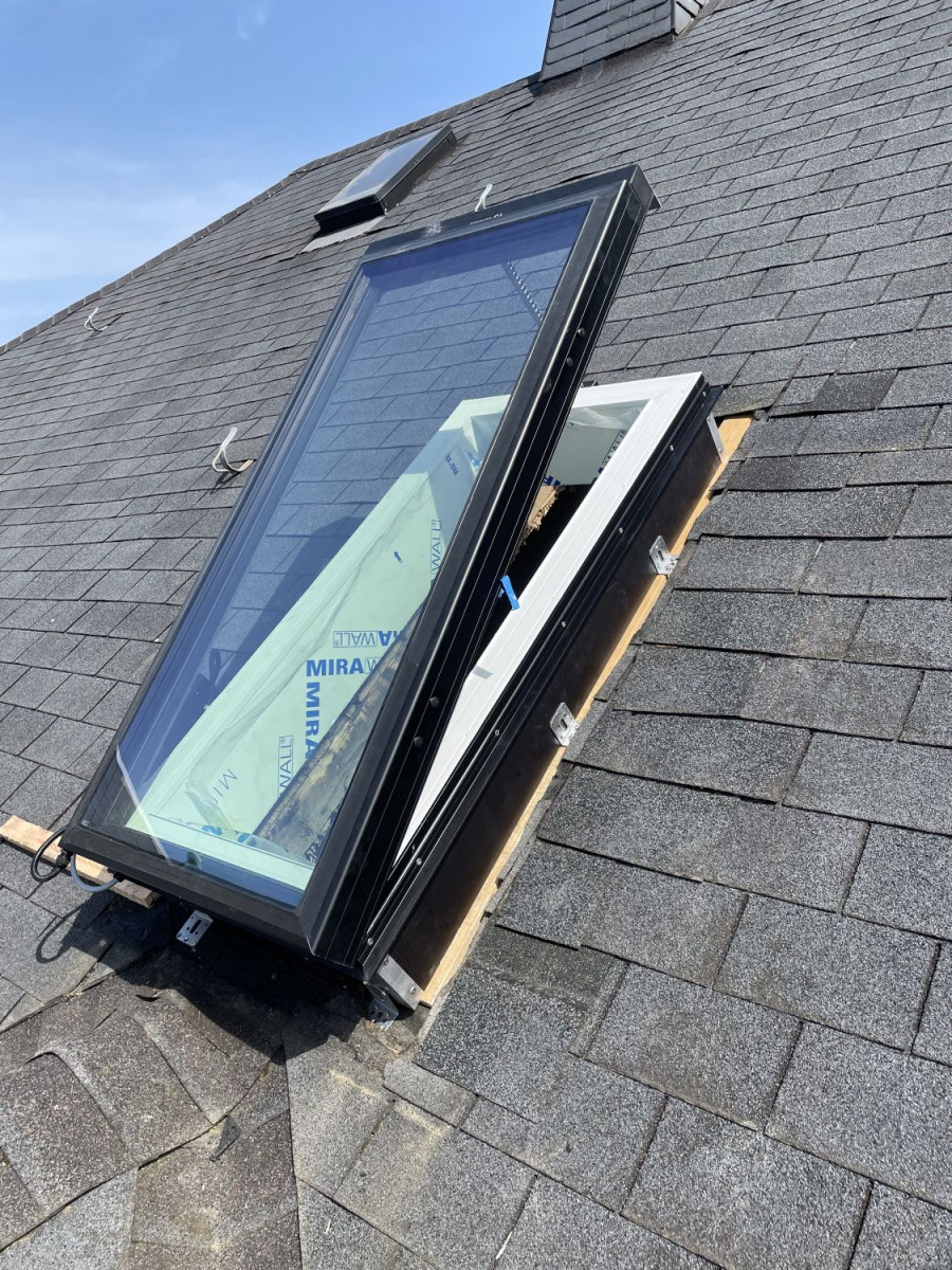 Der gesamte Austausch wurde in einem halben Tag erledigt und die Dachanschlüsse wurden wieder mit Blechverkleidung abgedichtet (auf den Fotos unten noch nicht zu sehen).