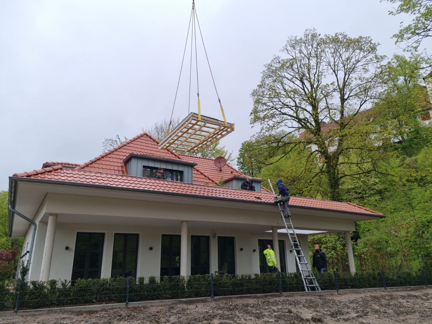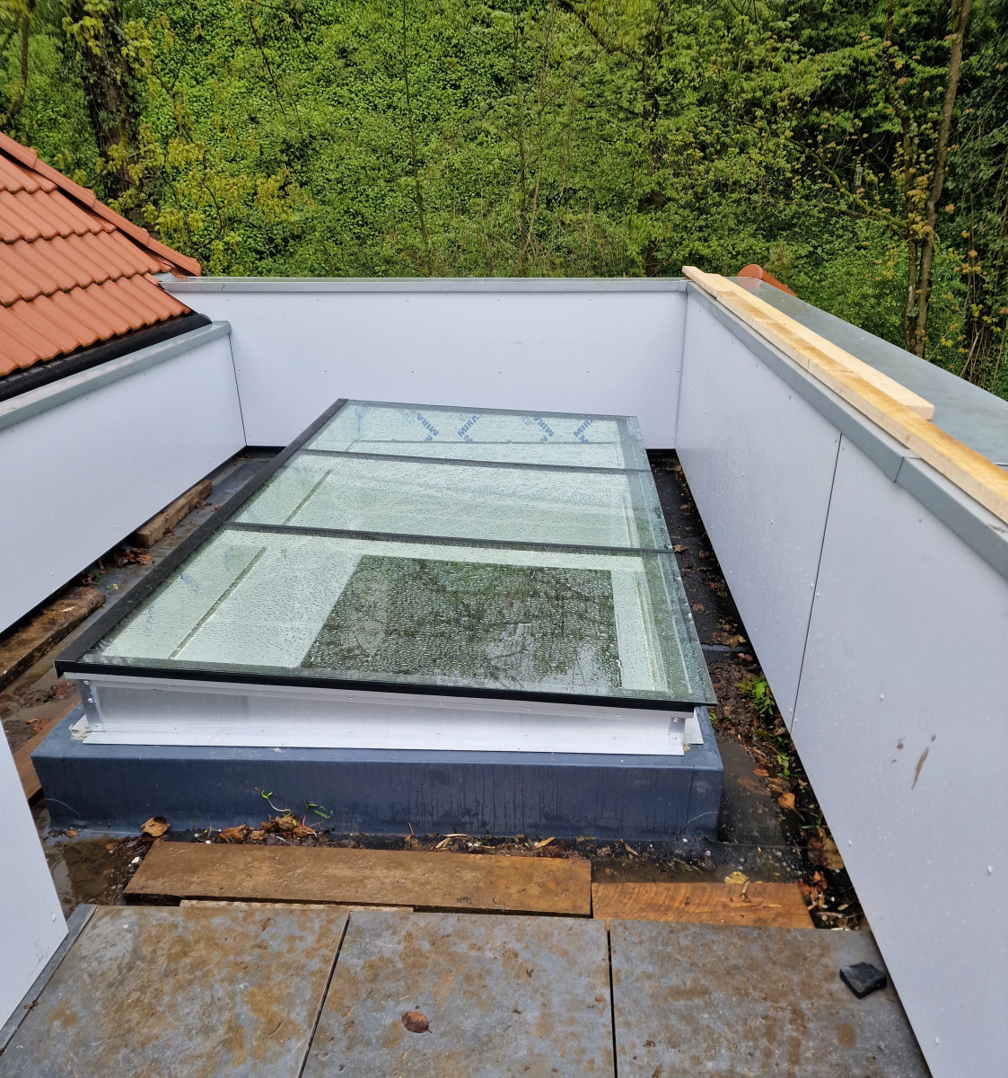 In Bad Iburg (Niedersachsen) wurde Dachlux mit der Lieferung eines Terrassen-Oberlicht 330 x160 cm beauftragt. Das Besondere daran war, dass der Endkunde die Innenausstattung in Weißaluminium haben wollte. Das hatte damit zu tun, dass er dachte, es würde besser zum Rest des Daches passen. Aber auch, weil es so völlig wartungsfrei ist. Kein Problem für Dachlux: anstatt der hölzernen Aufsatzkranz haben wir eine 40 mm starke Sandwichplatte mit genau der gewünschten Oberfläche verwendet.